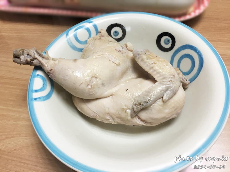 물에 희색만 해주면 닭 한 마리 육수가 완성~