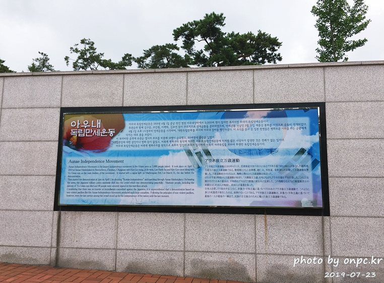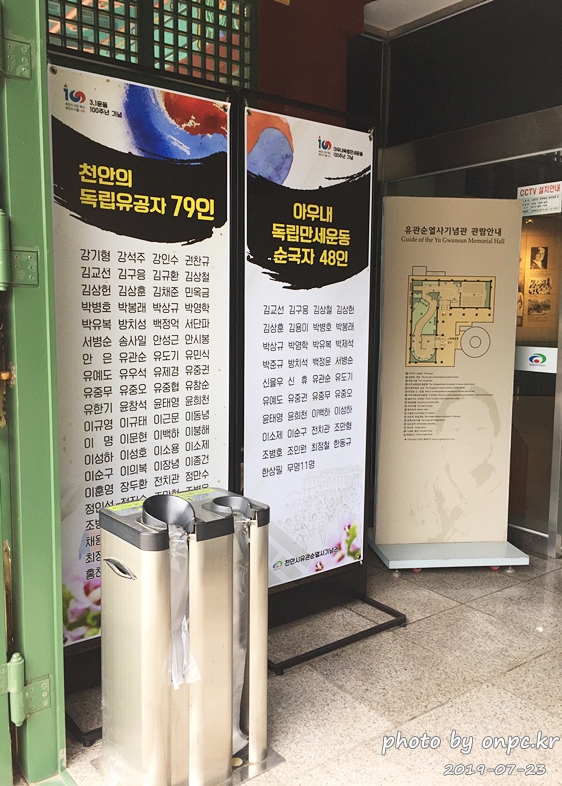 입구 입간판에 천안의 독립유공자 79인, 아우내 독립만세운동 순국자 48인 명단이 세워져 있습니다.