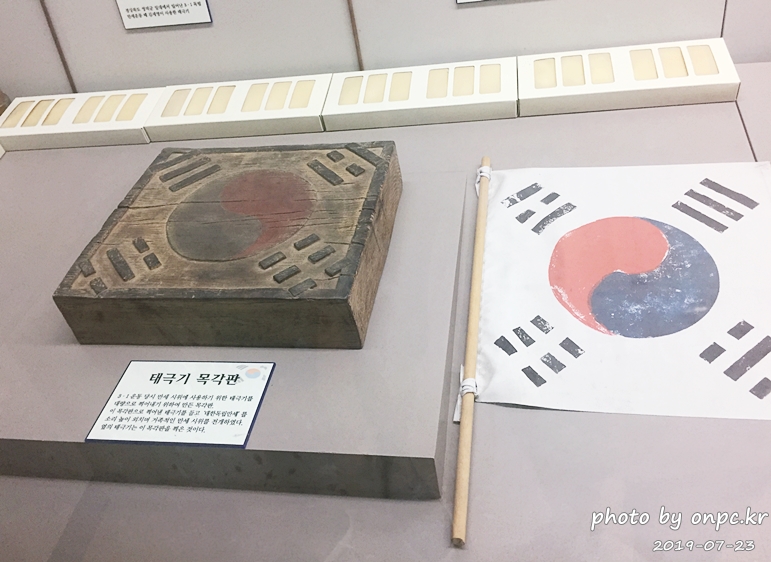 옆의 태극기는 목각판을 찍은 것입니다.