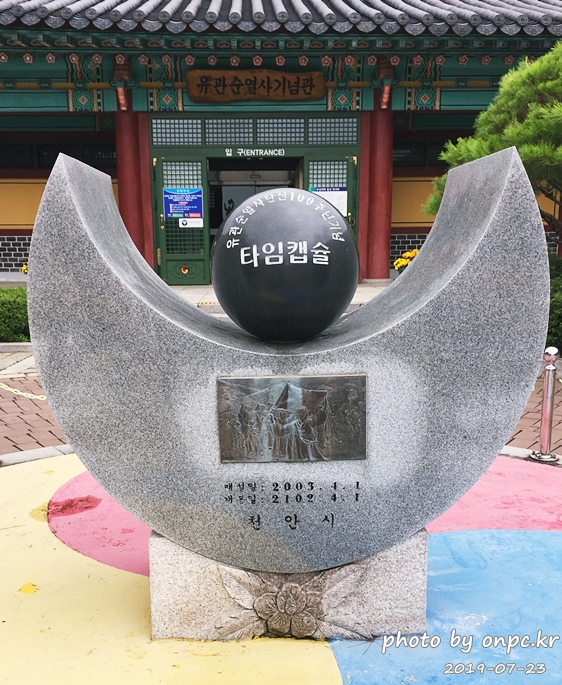 기념관 앞에서 유관순 열사 탄신 100주년 기념으로 만들어진 타임캡슐을 만날 수 있어요. (개봉일이 2102. 04. 01)