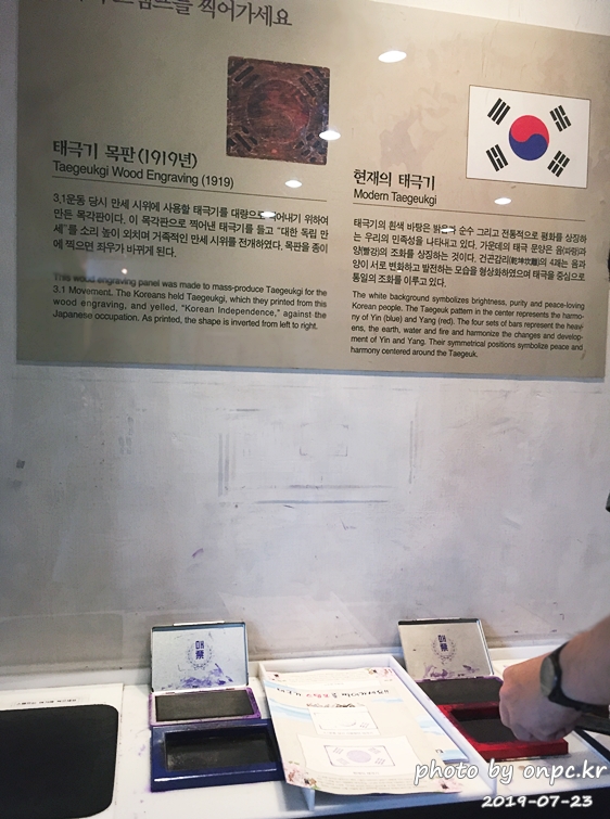 영상실을 나오면 태극기 스탬프를 찍어가세요!! 체험공간이 있어요.
