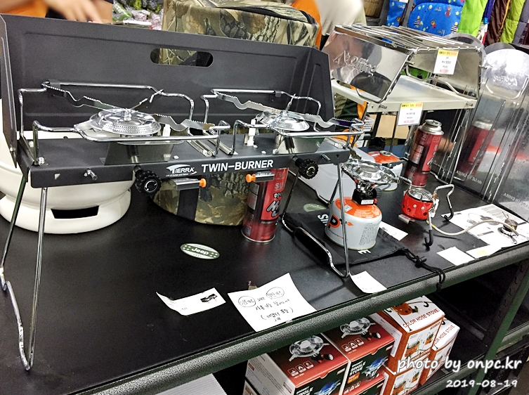 백패킹이나 크기가 작아 세컨드로 쓰기 좋은 미니 버너와 화력이 좋다는 강염 버너도 보이네요.