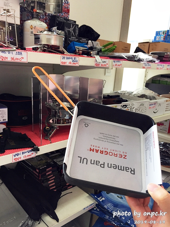 오~ 이것은 제로그램(ZERO GRAM)의 라면 팬! 하나만 있어도 코펠, 프라이팬 둘 다 가능해요.