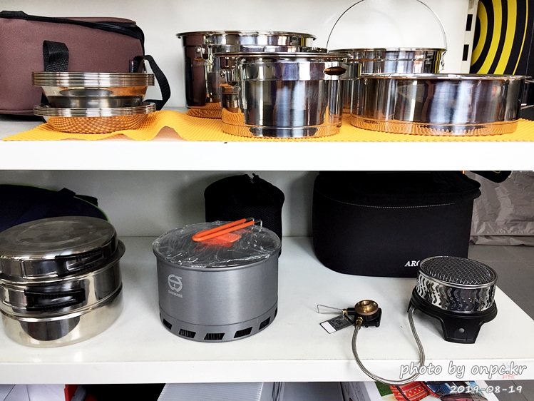 우측 하단에 가스 웨어(GASWARE)의 아크 스토브가 있고 함께 쓰는 포트도 중앙에 보입니다.