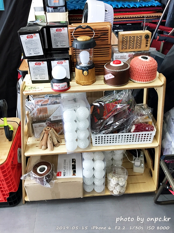 렌턴, 우드램프, 키친타월과 휴지 케이스, 햇 모자, 데이지 체인, 감성캠핑의 빠지지 않는 모닥 가랜드까지!