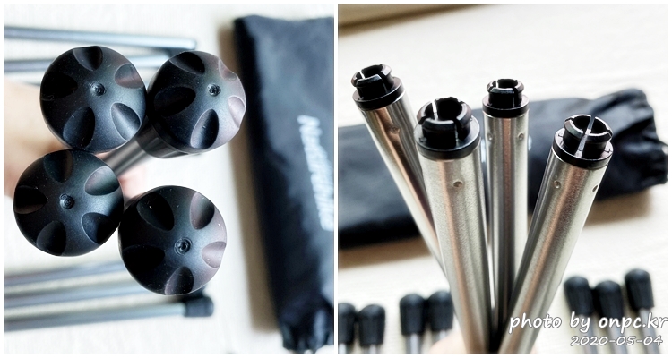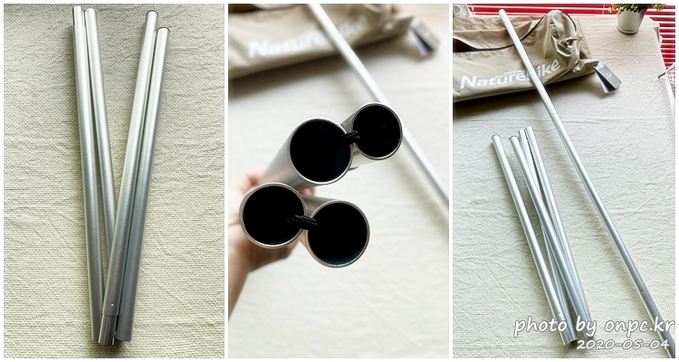 4단으로 접혀있는 지지 폴대 2개를 길게 펴서 조립해 줍니다~!