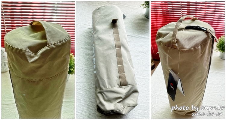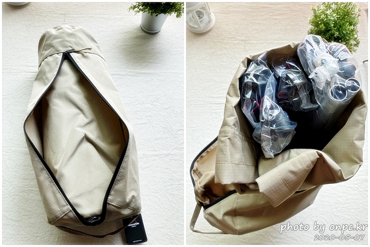 한쪽 모서리에 네이처하이크 로고가 새겨져 있어요. 전체적으로 연한 카키색으로 깔끔하고 예뻐요.