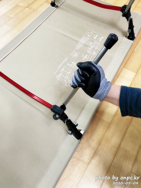 지지 브래킷의 조립한 모습. 야전침대를 지지해 주는~ 7075 알루미늄 소재로 튼튼한 프레임!