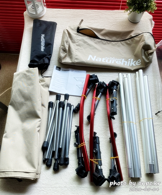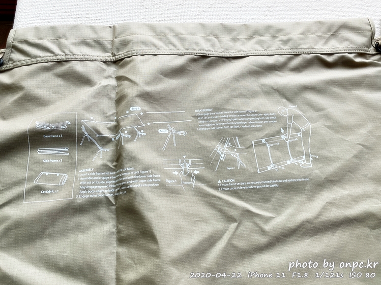 네이처 하이크(Naturehike) 브랜드의 경량 야전침대, 2020년 신형 모델인 카키 색상으로 구입했어요.
