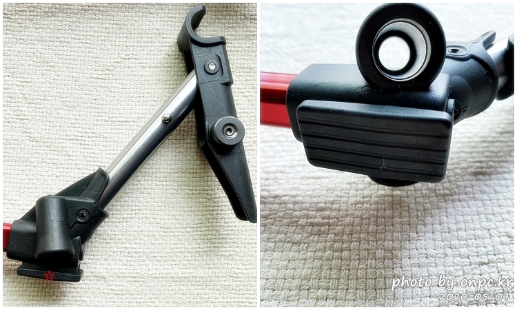 지지 브래킷 끝 레버 잠금 부분과 바닥에 닿는 부분.