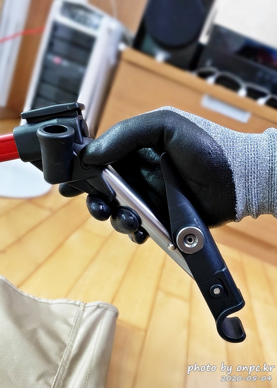레버를 지지대에 끼웠다면 다음은 위 사진처럼 레버를 잠가주면 됩니다. 딸깍~! 소리가 나면서 잠겨요.(참고용)