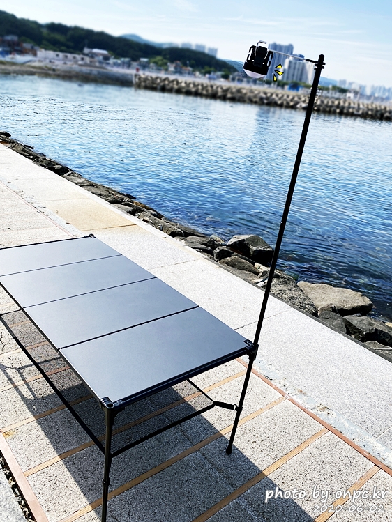 테이블 끝에 랜턴 스탠드를 꼽아주고 랜턴까지 걸어봤어요~ 낮에는 필요 없지만 참고용으로요. ㅋ