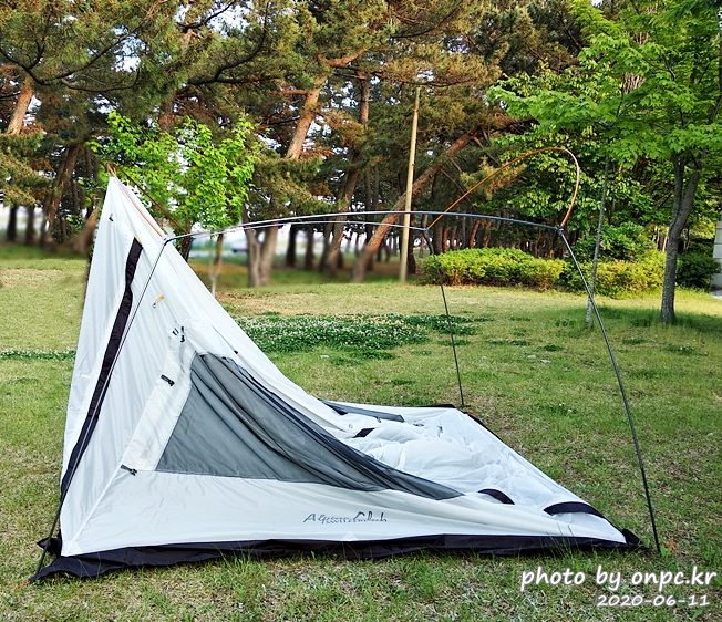 가벼운 무게, 수납했을 때의 작은 사이즈로 캠핑, 백패킹 때 사용하기 좋아요. 자립형으로 빠른 설치와 해체가 큰 장점~!