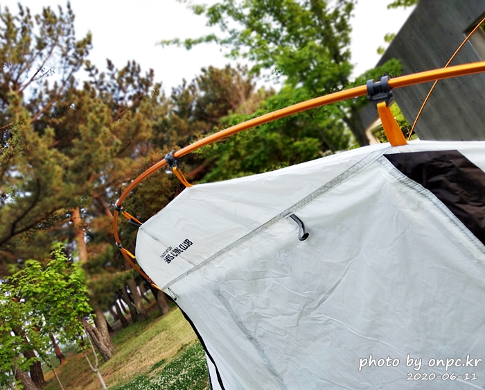 이 정도만 해도 설치의 반은 끝난 거예요. 이제 쉘터에 달려있는 버클을 폴대에 걸어주기만 하면 끝납니다.