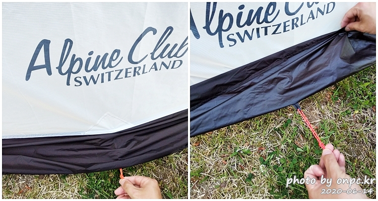 쉘터 바닥을 살펴보면 편평한 웨빙 끈이 보입니다. 이동하다 발에 자주 걸려서 조심해서 다녀야 해요.