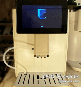 커피머신이 켜지는 과정을 원두부터 분쇄, 추출, 시작까지 화면에 단계적으로 보여주는 모습이 좋아요~