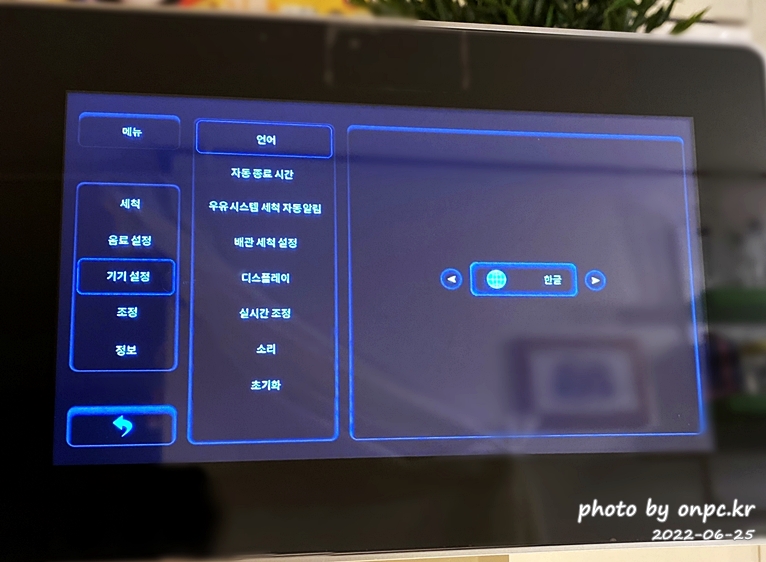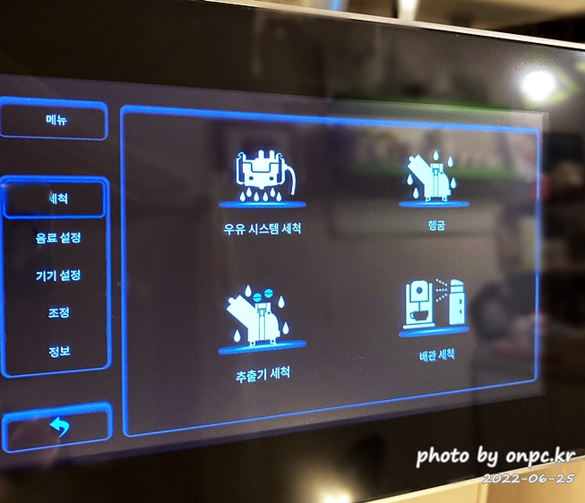 자동세척이 완료되면 메뉴 화면이 나타나요~