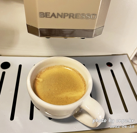 에스프레소 커피색도 좋고 크레마도 제법 잘 나온 거 같아요~