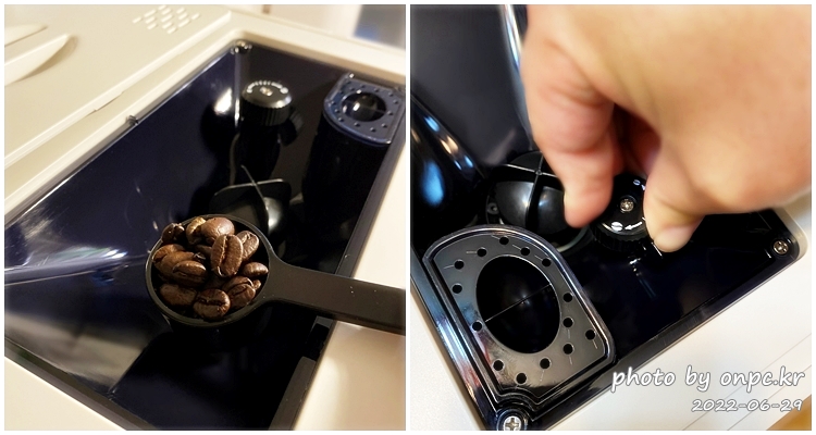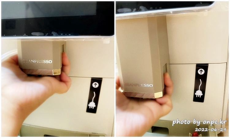 물통, 원두 통이 본체 내부에 위치해있어서 양 조절이 필요할 때 바로 확인이 안 된다는 점!(자동 알림으로 알 수 있긴 해요 ㅋ)