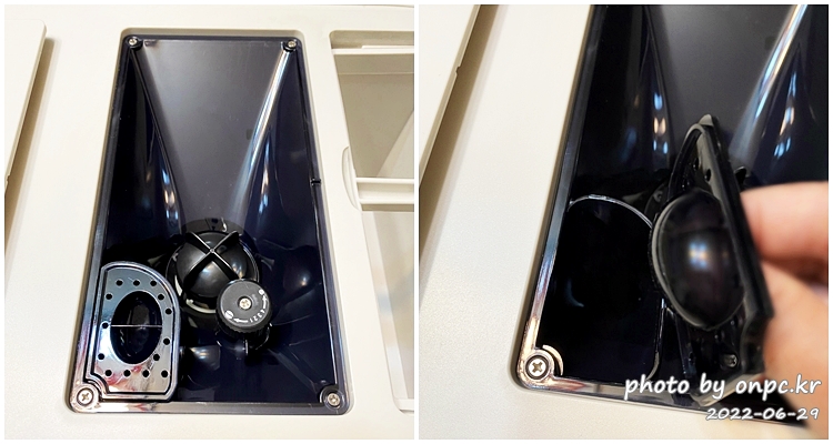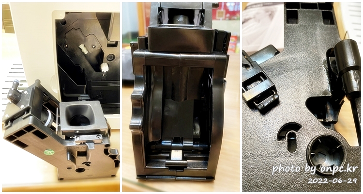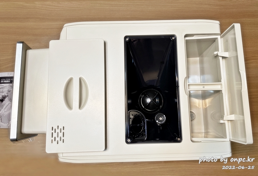 세척할 때 커피머신 옆면 뚜껑 열고 추출기 빼서 세척하기도 편한듯합니다.
