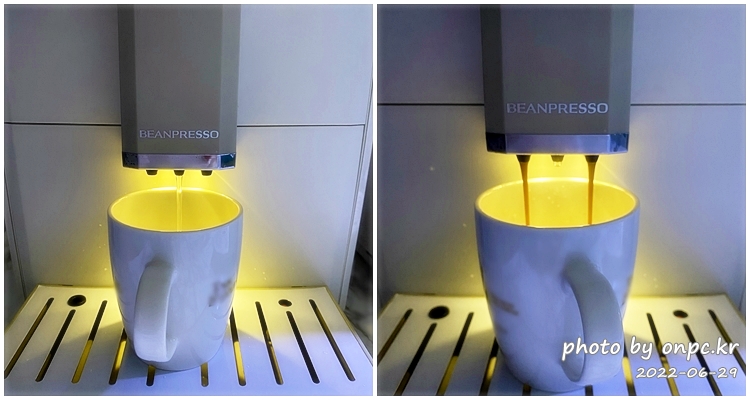 아메리카노 물이 먼저 나오고 커피가 추출되는 방식이에요.