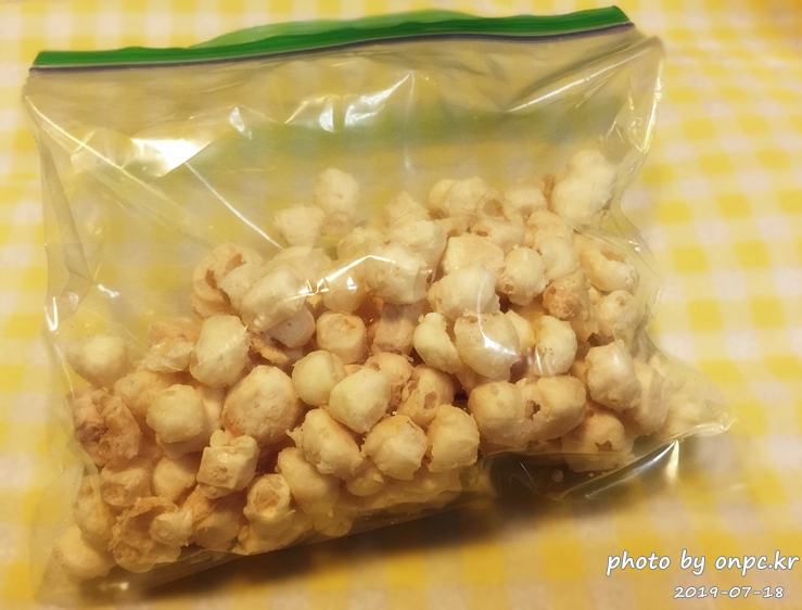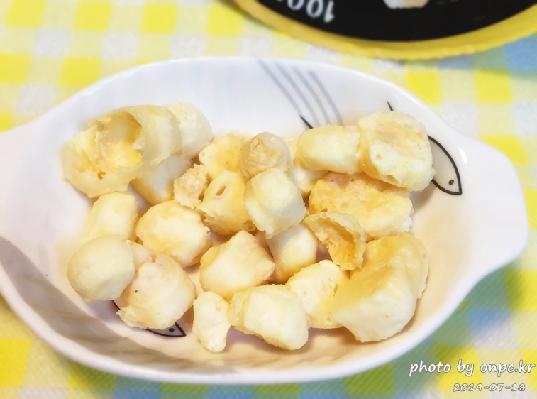 동글동글하고 팝콘처럼 생긴 귀여운 모양의 치즈 스낵이었답니다.