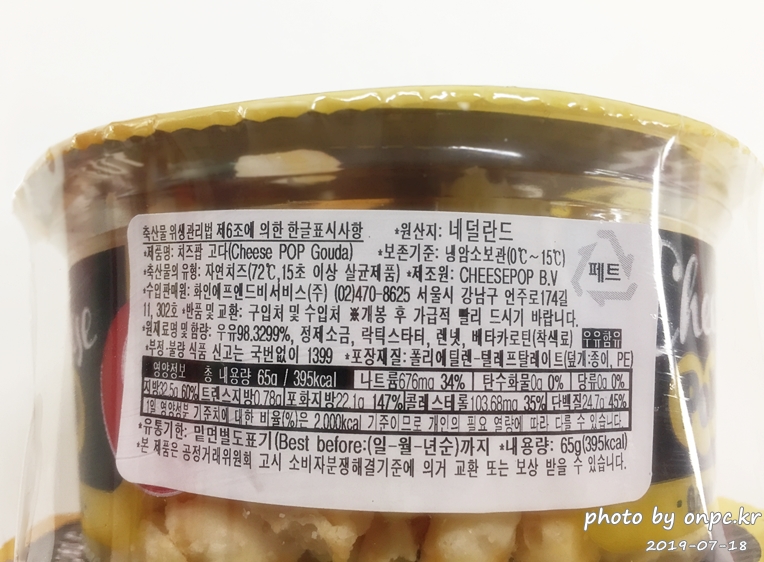 100% 자연치즈~ 48개 이상의~ 알맹이가 들어있다고 하네요.