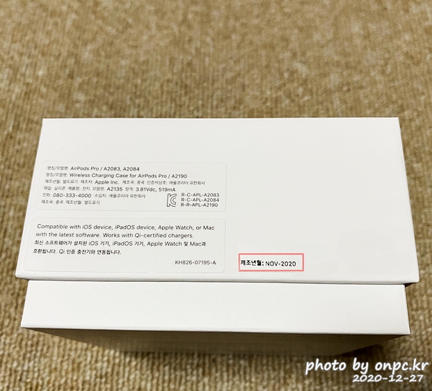 에어팟 프로 박스 옆면과 크래들 뒷면에서 제조년월을 쉽게 확인할 수 있습니다.