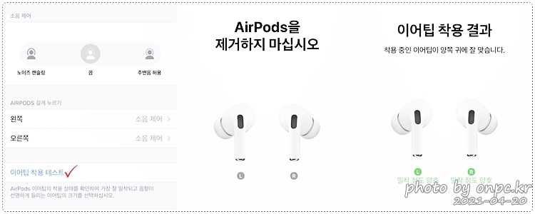 아이폰에서 이어팁 착용 테스트를 한번 해보세요.
