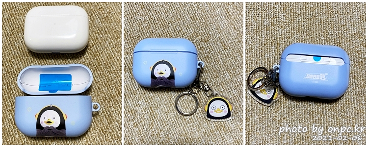 에어팟 프로 케이스를 구입한 펭수 케이스 안에 넣어주고 뚜껑 부분 고정용 테이프를 떼고 떨어지지 않게 눌러서 고정해주면 돼요~
