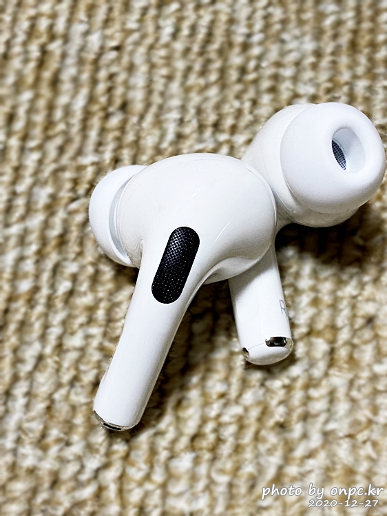 에어팟 프로 외부의 검은색 부분이 외향 마이크 부분.