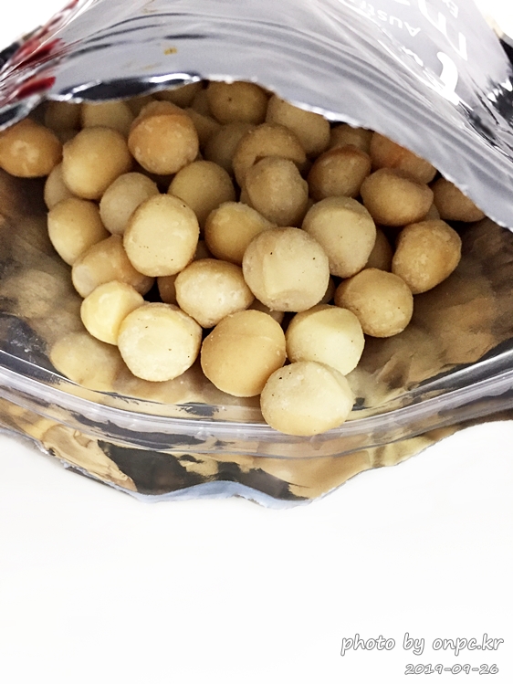 포장을 열면 은박의 지퍼백에 동글동글한 마카다미아가 보여요~^^