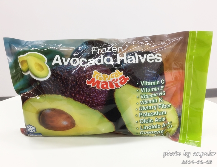 냉동 아보카도는 지퍼백 포장에 두꺼운 비닐로 포장되어 있어요.