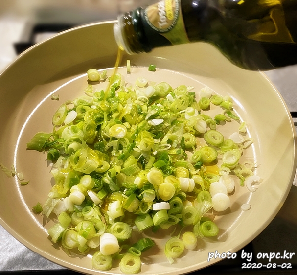 파 송송 올리브유 솔솔~ 노릇하게 삼겹살도 구워주고~