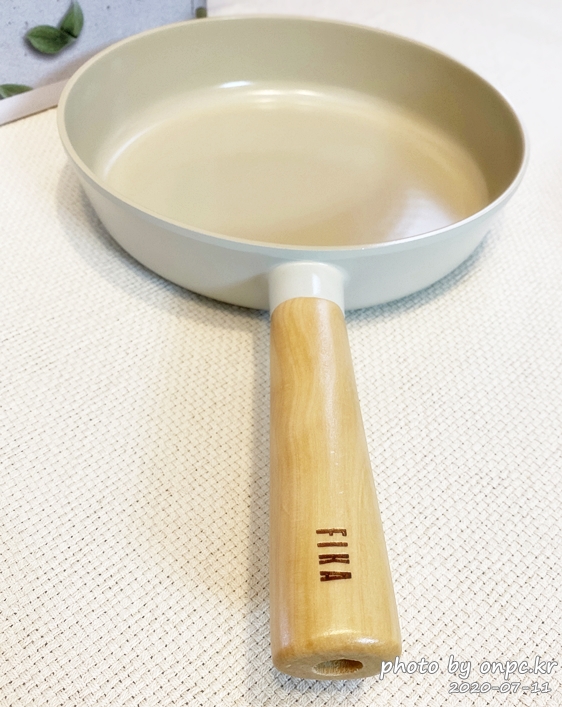 프라이팬의 밝은 색상, 우드 손잡이 전체적으로 예쁩니다.