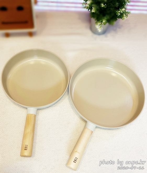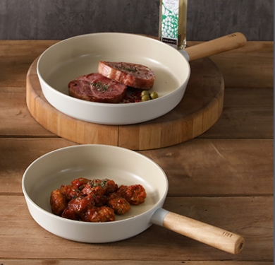 프라이팬(Fry Pan) 2종 세트: 24cm(9.5") / 28cm(11") / 재질: 몸체-알루미늄(세라믹 코팅), 핸들-나무제