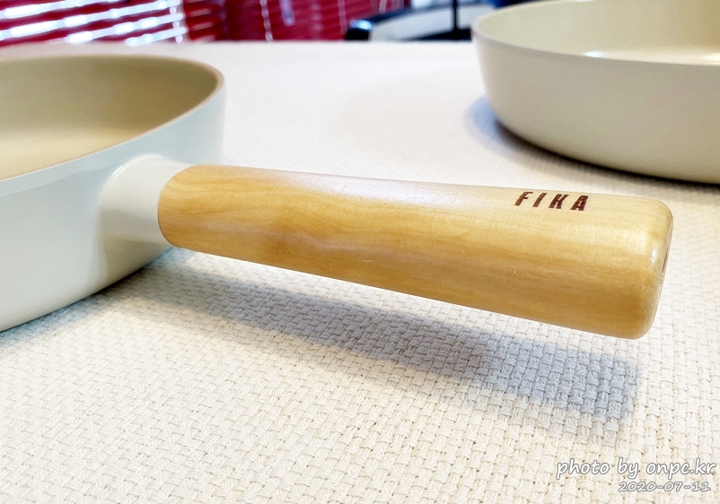 나무 재질의 우드 손잡이가 움켜잡았을 때 그립감이 좋아요. 손잡이 끝에 새겨진 FIKA(피카)~