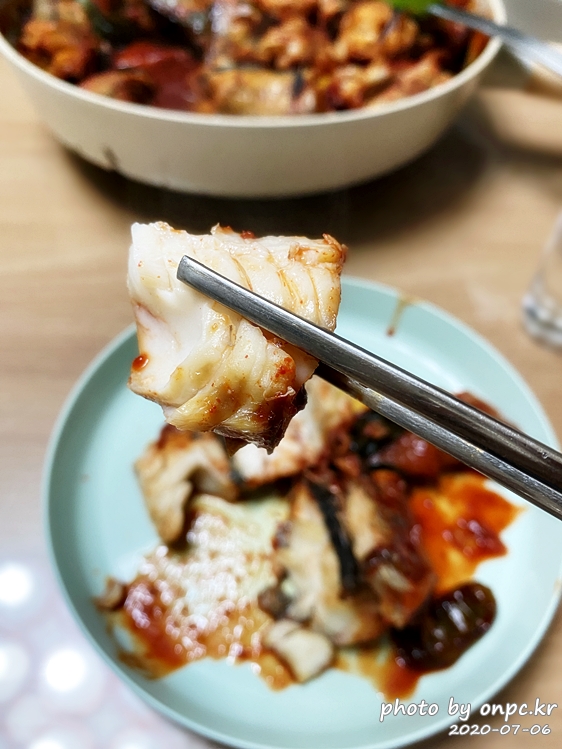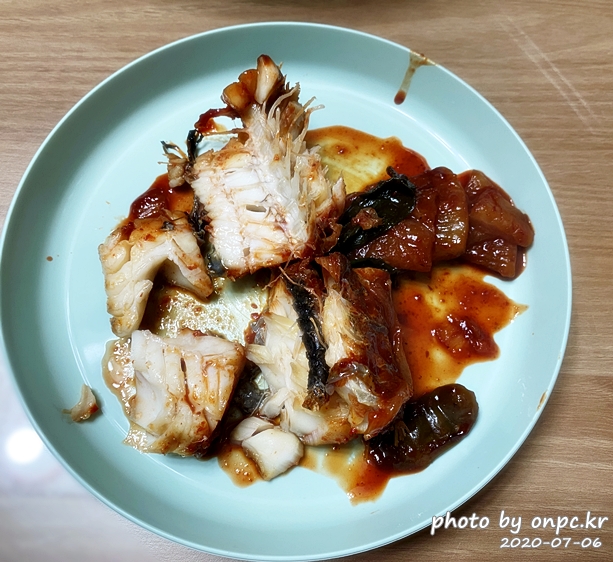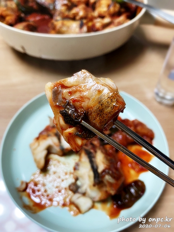 명태 살이 푸짐하고 한입 먹는 맛이 납니다. 집에서 명태조림을 먹다니! 기분 좋고 맛도 있어요~