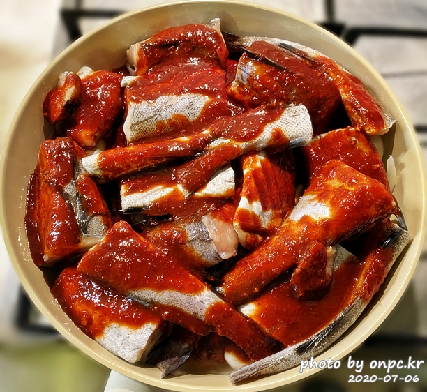 명태 위에 양념을 골고루 올려줍니다.