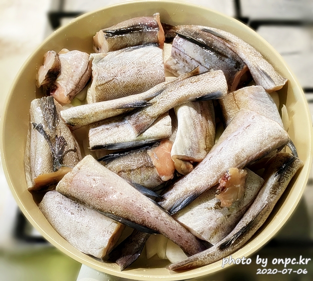 2킬로가 넘는 양이라 몸통, 꼬리 부분 모두 담아보니 양이 상당히 많습니다.