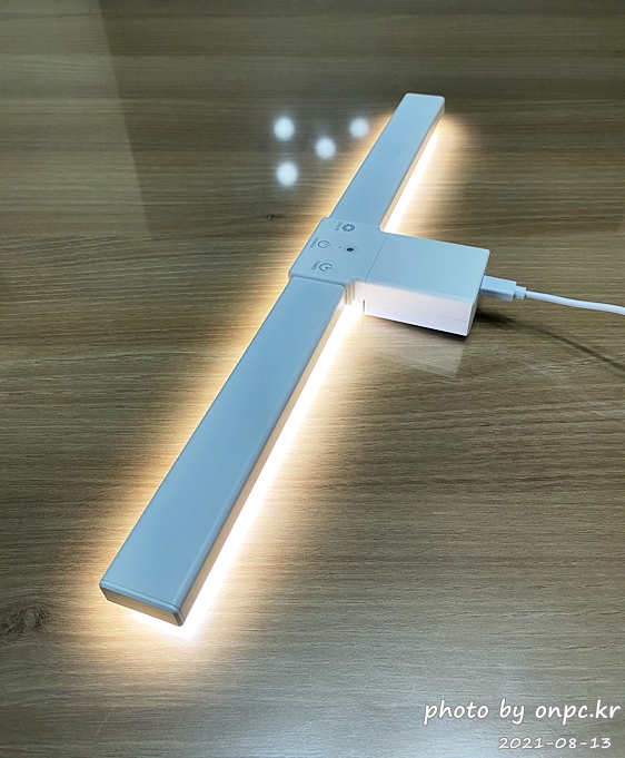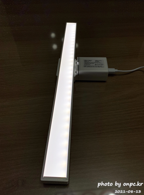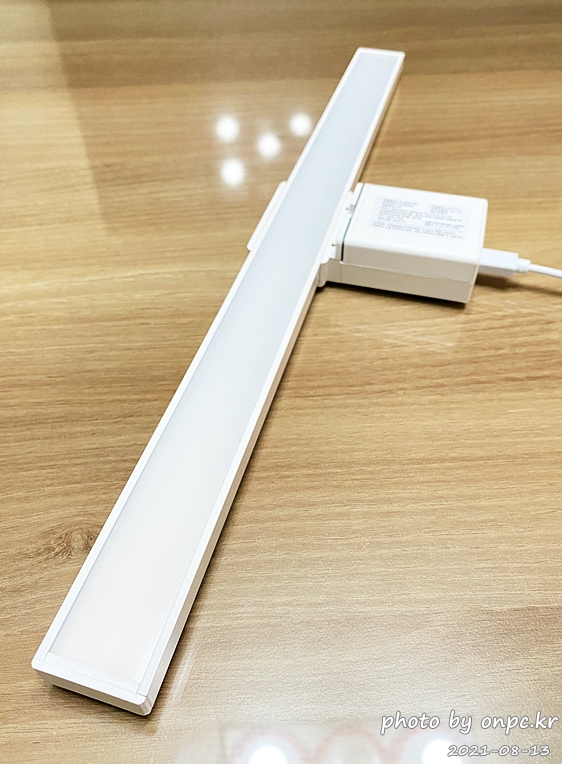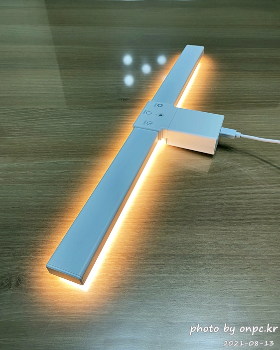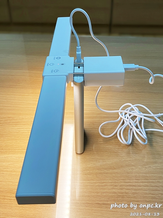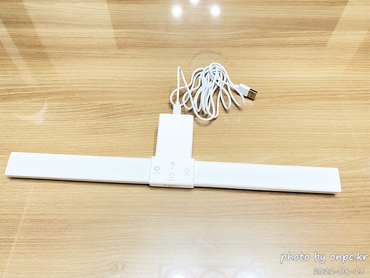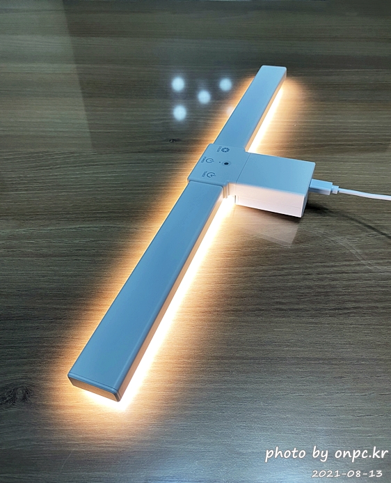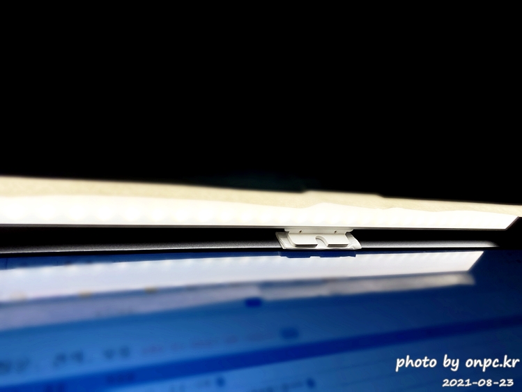 모니터에 위에 고정해서 설치하면 조명이 밑으로 어두운 부분을 밝혀주는 형태입니다.