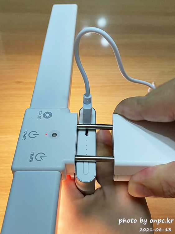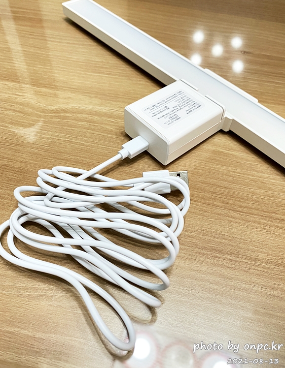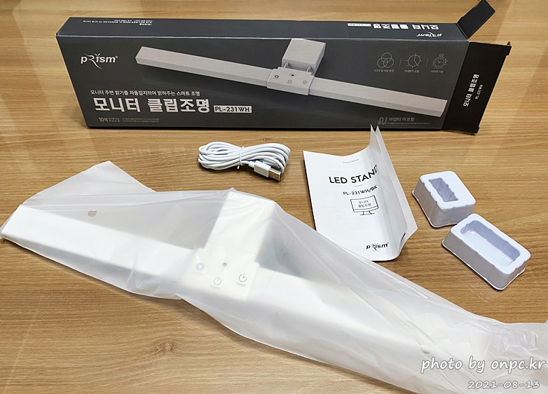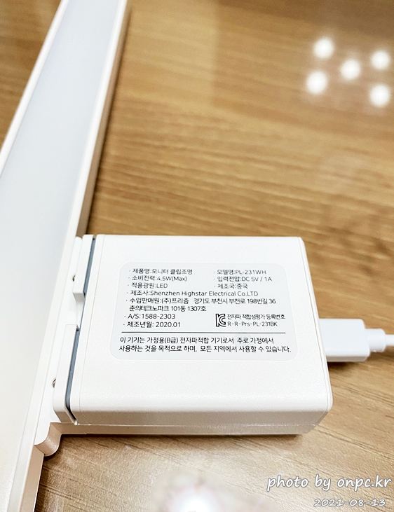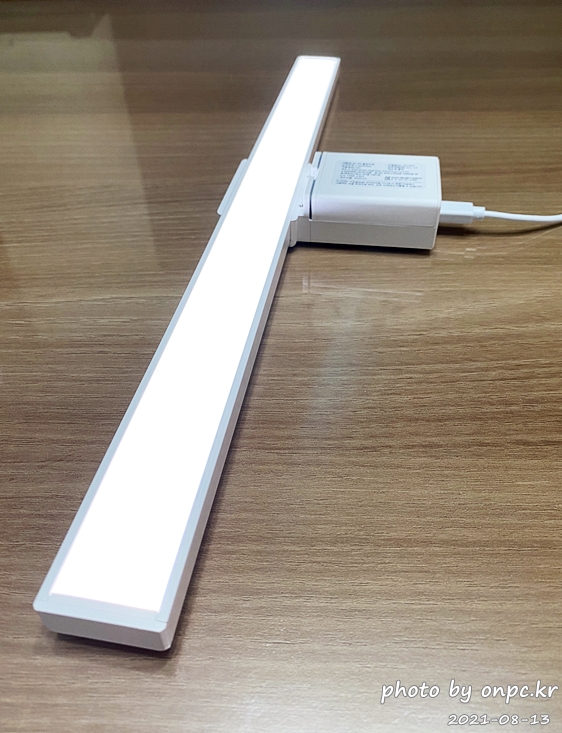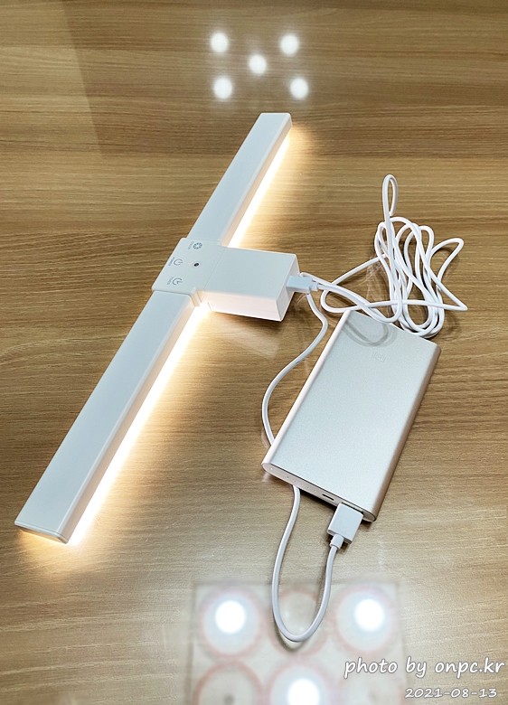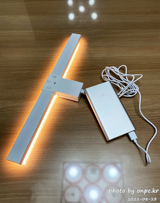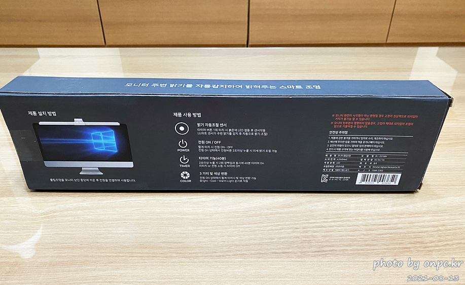 모니터에 위에 고정해서 설치하면 조명이 밑으로 어두운 부분을 밝혀주는 형태입니다.