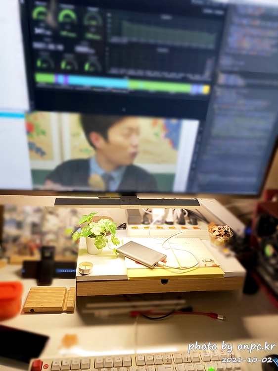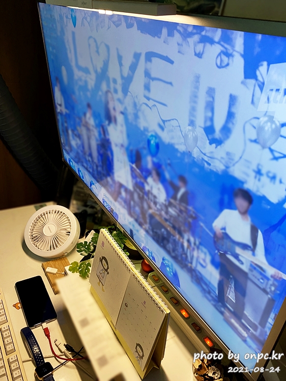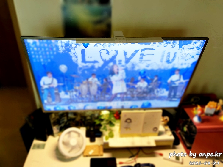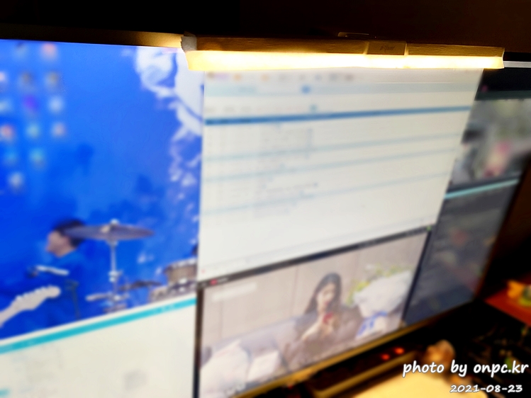 키보드도 잘 보이고 모니터 아래로 빛을 비추어주니 어두웠던 부분이 밝아집니다.