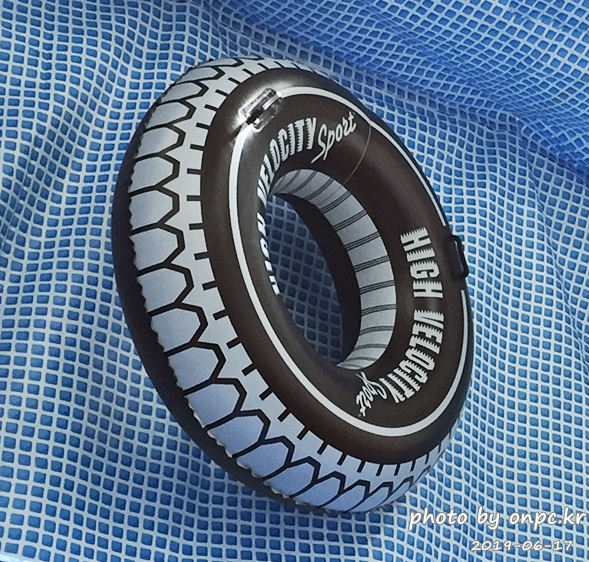 공기 주입 물놀이 기구 / 타이어 디자인의 1인용 튜브, 리페어 패치 포함 / 제품 치수: 1190(외경) x 340(내경) mm