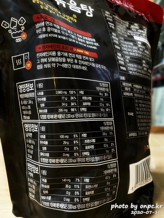 내용량: 1300g(650g x 2입) / 즉석조리식품 / 닭고기(국내산) / 납작면, 구멍떡이 함께 들어있어요.