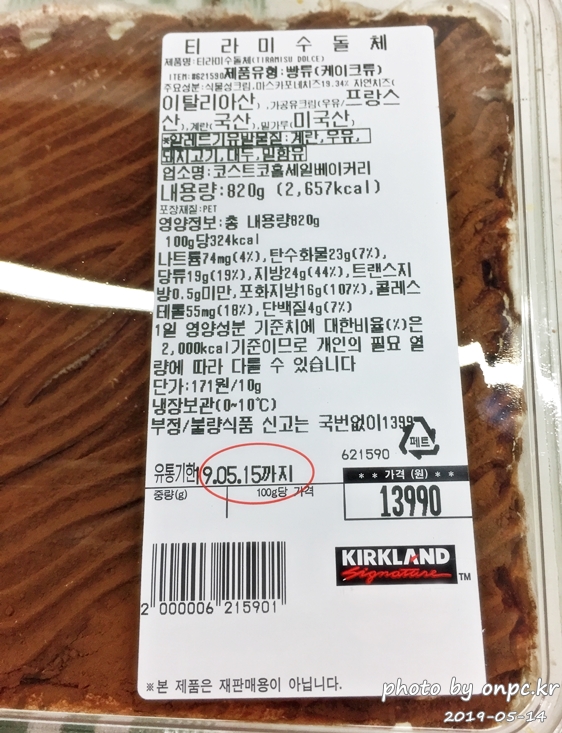 주요 성분: 마스카포네 치즈 19.34%, 자연치즈(이탈리아산), 유크림(프랑스산), 계란(국산), 밀가루(미국산)..