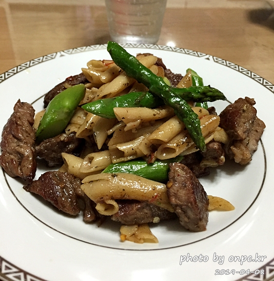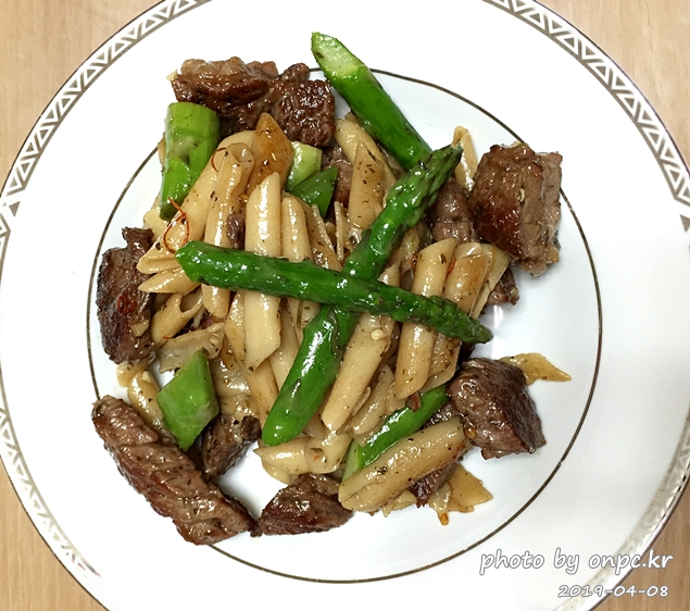 소고기 아스파라거스 오일파스타