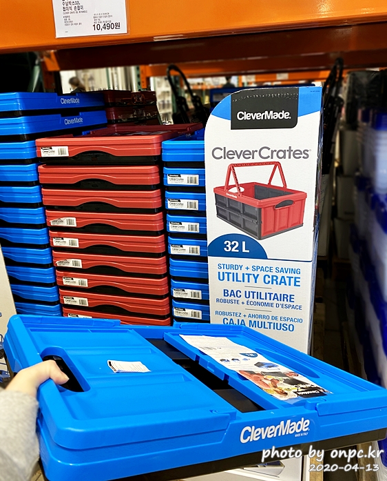 접이식 수납박스 32L(Collapsible Crates 32L w/Handle). 가격은 10,490원.