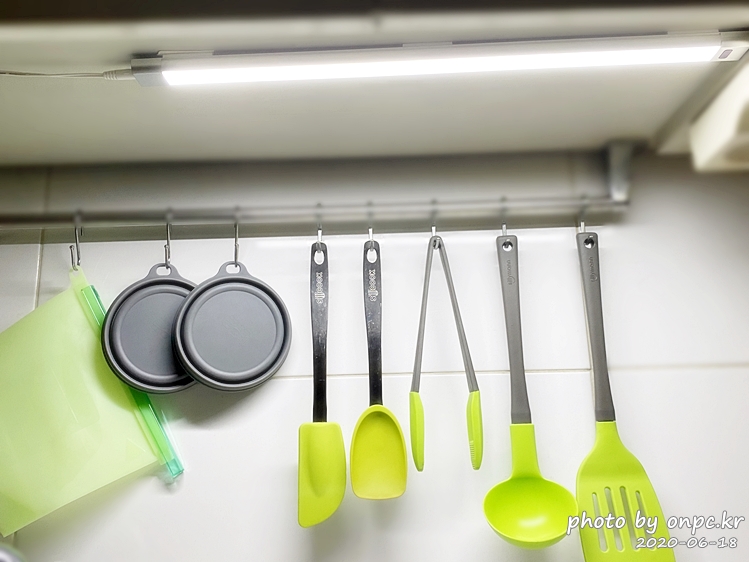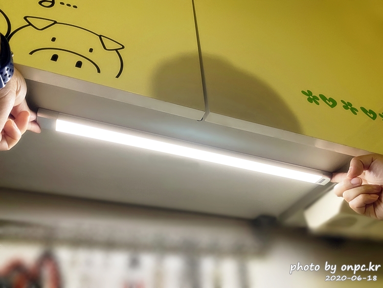 특별히 설치라고 할것도 없고 간편하게 부착하는 방식으로 설치를 했고 주방의 어두운 부분도 말끔히 해결했어요~