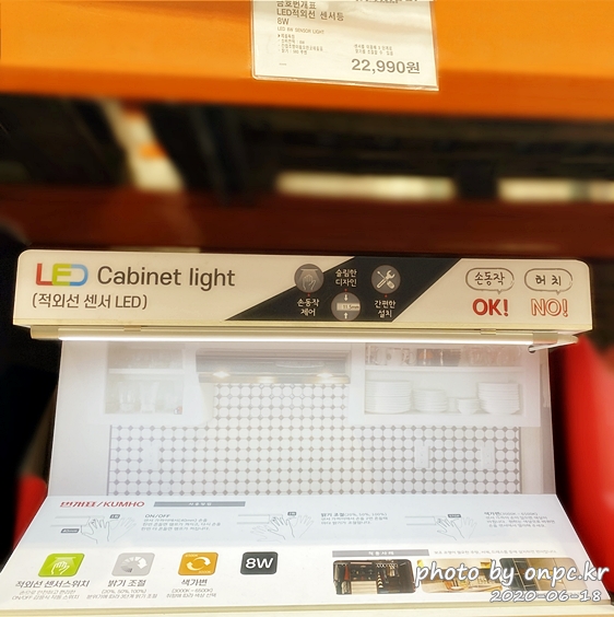 적외선 센서 LED 조명(INFRARED SENSOR LED CABINET LIGHT). 가격은 22,990원.